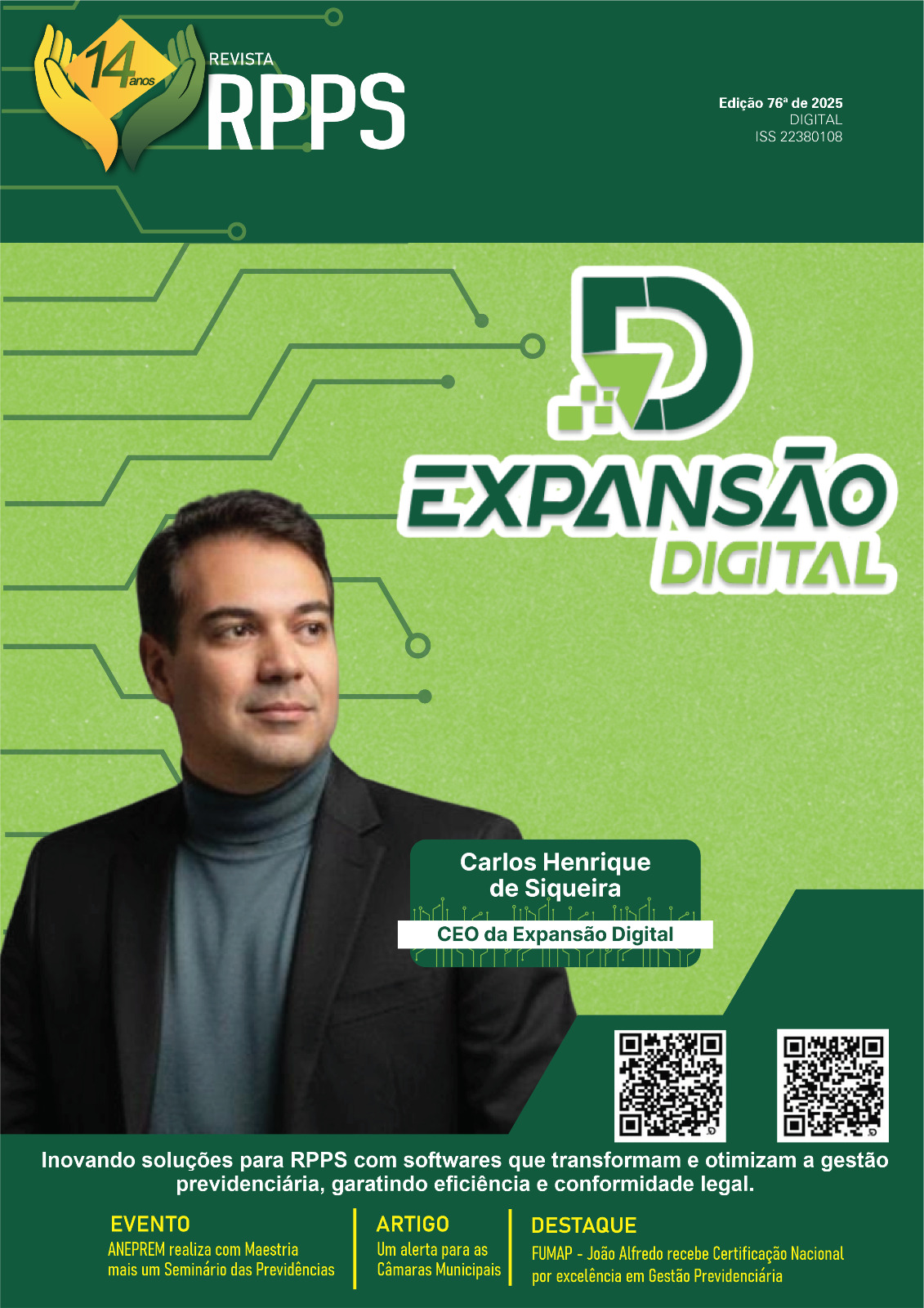 A nova edição da Revista RPPS do Brasil traz em sua capa Carlos Henrique de Siqueira, CEO da Expansão Digital, empresa que vem se consolidando como uma das principais referências em inovação tecnológica para RPPS em todo o país.