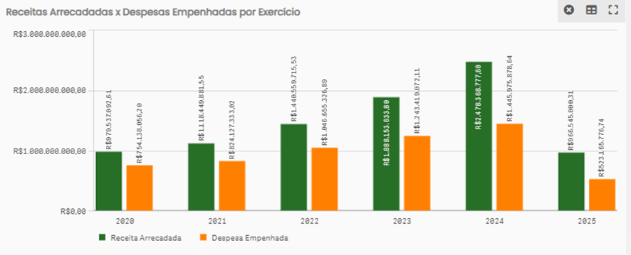 Comparação entre receitas e despesas previdenciárias, evidenciando eventuais atrasos nos repasses.